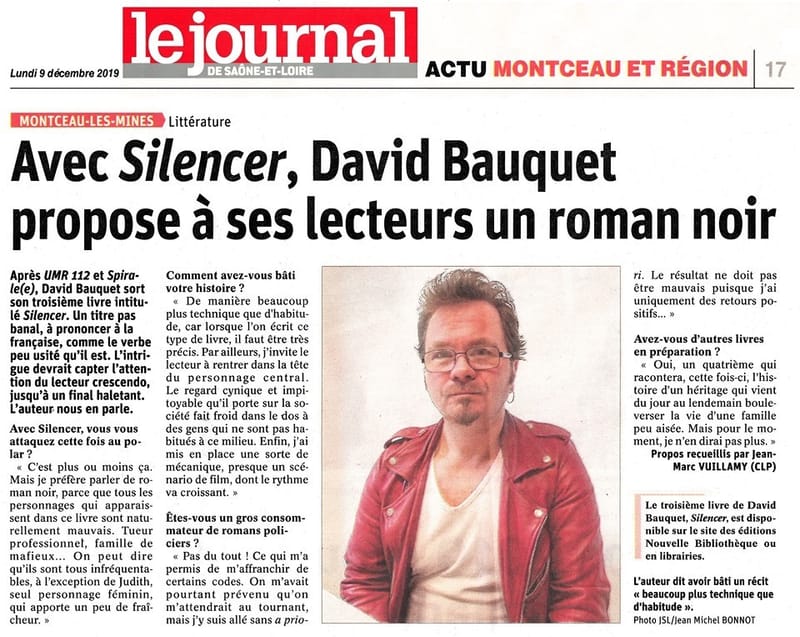 Ce récit est vraiment très intéressant, il pourrait bien être mis en images puisque le suspense et bien intrigant, l’ambiance est mystérieuse.C’est un roman qui captive le lecteur, c’est une histoire qui regorge de rebondissements. David Bauquet est un auteur que j’aime par la fraîcheur de sa plume, l’audace de son intrigue et le contrôle de tous ses personnages sans jamais déraper parce qu’il en a trop. Je vous recommande ce roman, car David Bauquet aime sonder et interroger le lecteur sur les limites de l’être humain."